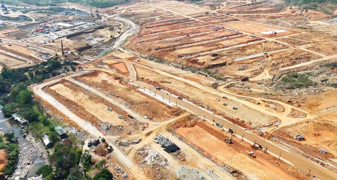 Hạ tầng đường nội khu tại phân khu Bạch Vân và Vịnh Mây đã cơ bản hoàn thành, bao gồm đường trục chính, tuyến ven biển và đã bắt đầu trải nhựa lớp đầu tiên. Tại phân khu Đảo Ngọc, đơn vị thi công đang áp dụng kỹ thuật bạt đồi giật cấp (bậc thang) để tạo nền móng cho biệt thự sườn đồi view biển.